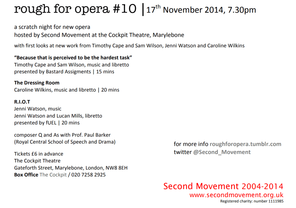 ROUGH FOR OPERA #10 | 17.11.14 | programme notes + bios